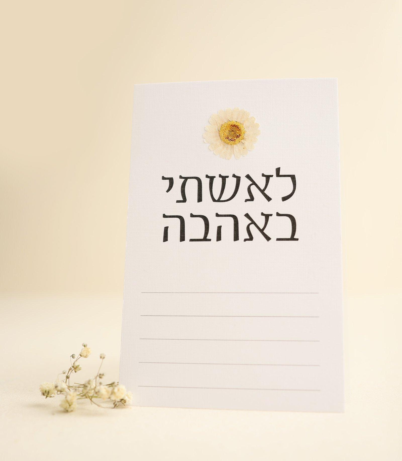 ניתן להוסיף גלויה עבודת יד מיוחדת ומרגשת עם פרחים מיובשים ב- ₪25 בלבד